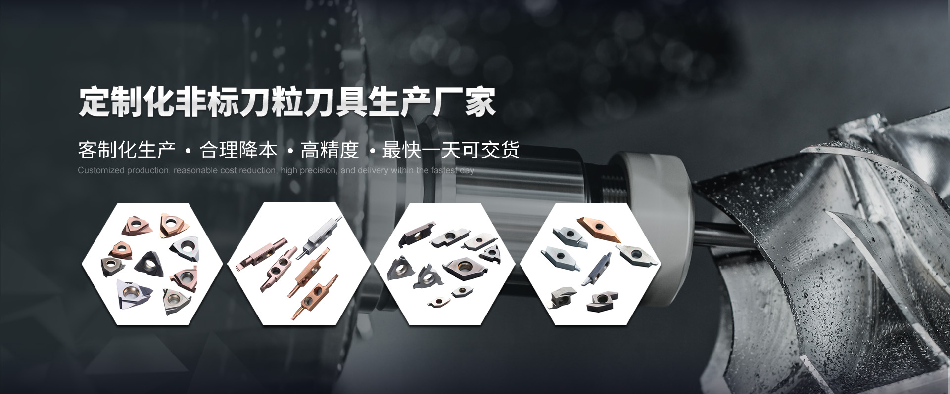 A 專注于小零件車削、鉆削、銑削類—為您提供精密刀具整體解決方案,可為您個性化定制; B 公司有豐富的CBN、PCD、陶瓷、硬質合金基體標準及非標刀粒類和圓棒類刀具設計經驗,配套有刀桿刀柄事業部,方便客戶定制選配; C 公司自主開發的專利自動車床刀粒和走心機刀具,性價比極具競爭優勢,您的不二選擇。